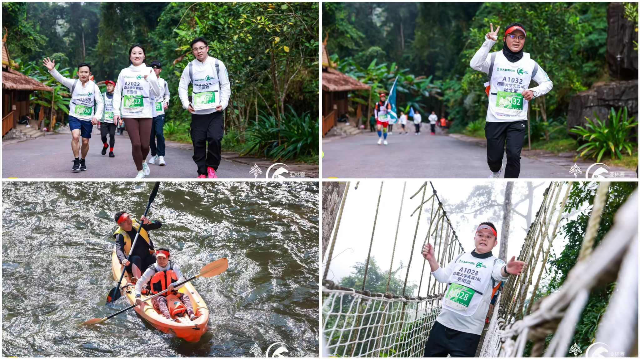 赛事全程约52公里,贯穿原始雨林、茶马古道、傣族古寨等多重生态与文化场景,并凭借空中树冠走廊、乘船出发仪式、雨林露营体验三大特色环节,打造出独具魅力的赛事体验。西南大学MBA队员们在此过程中,不仅挑战了树冠穿越、河流漂流与山地越野,更在协作中深化团队默契,生动诠释了“知行合一”的育人理念。