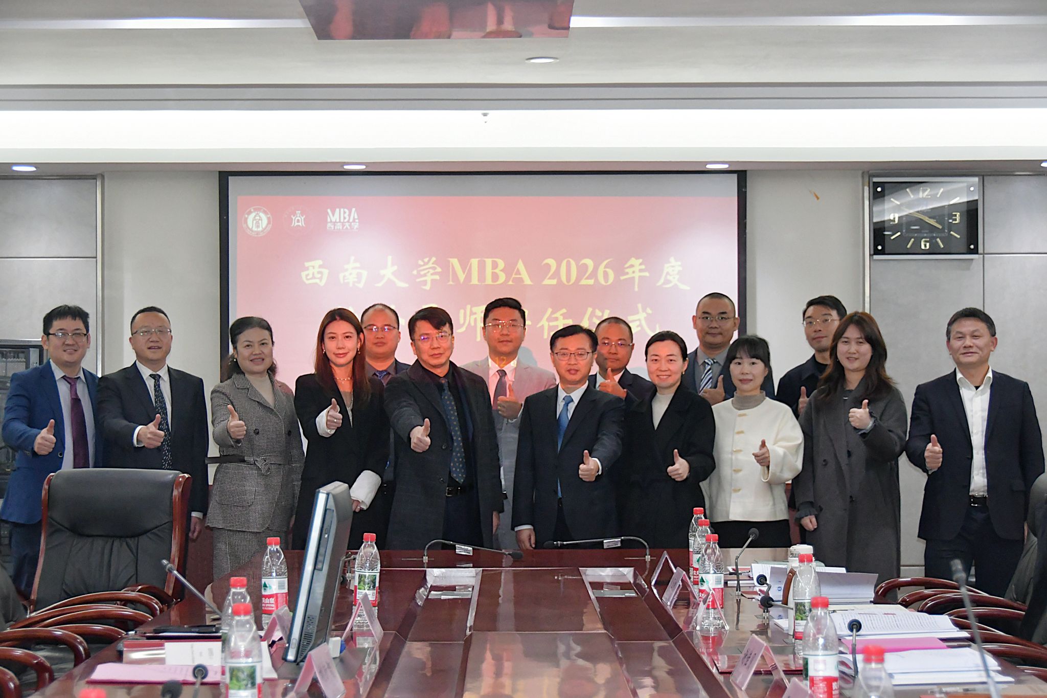 1月12日,2026年MBA教育高质量发展座谈会及校外导师聘任仪式在学院顺利举办,副院长刘新智教授,副院长、非全专硕教育中心主任甘晓龙教授,副主任金绍荣教授、王双龙副教授、刘向强教授,学院办公室主任赵莉萍老师、9位校外导师出席了此次会议,会议由金绍荣教授主持。